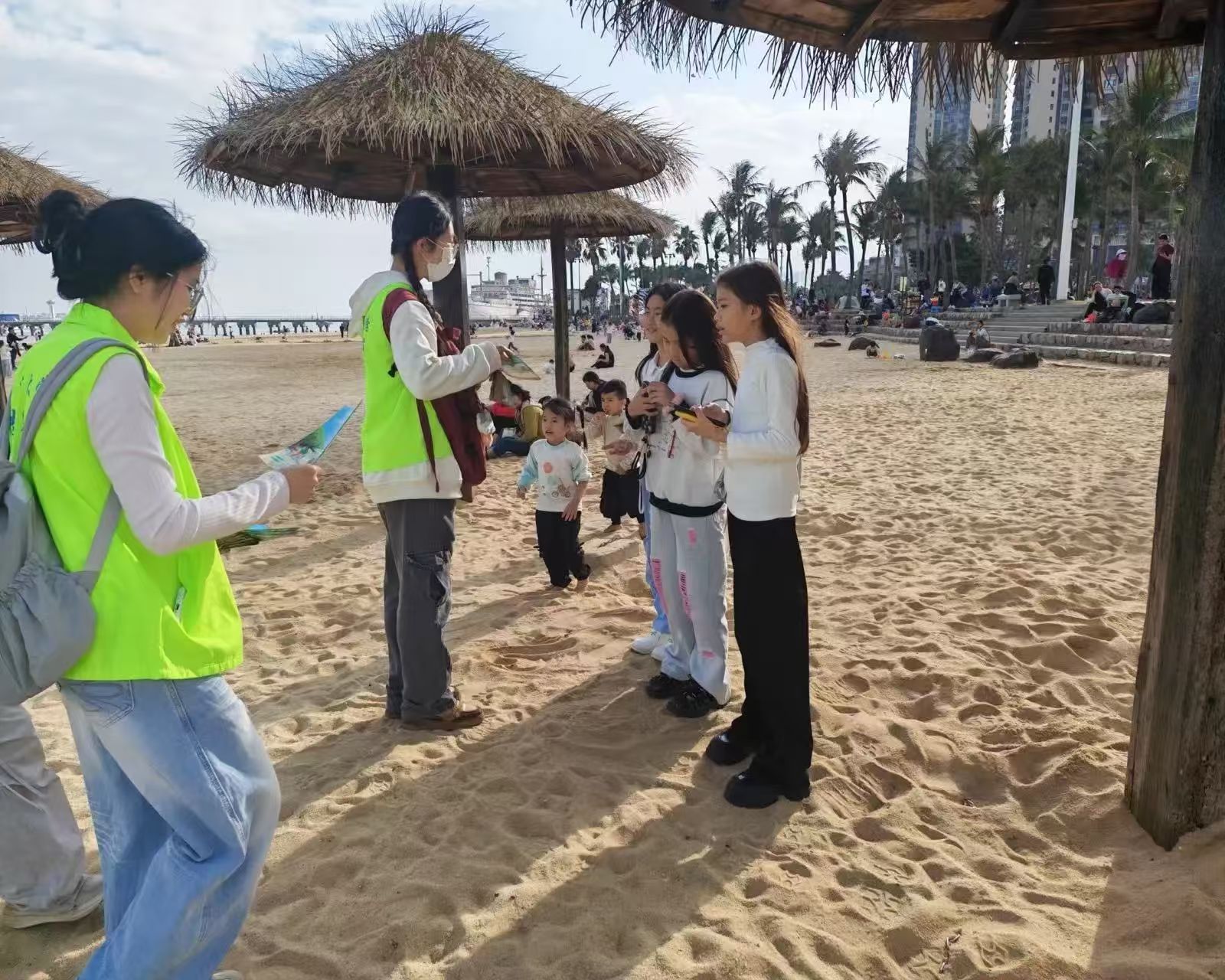 活动现场,全体人员分成若干小组展开活动,宣传小组的志愿者们身穿马甲,派发宣传单,向现场群众和游客普及了海洋生态保护知识,讲解了海洋垃圾对海洋生物及生态环境的危害,宣传海洋环保和红树林生态知识,用生动案例解释其生态价值,不少游客驻足倾听并加入讨论。